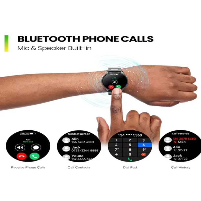 مکالمه بلوتوثی: با استفاده از میکروفون و بلندگوی داخلی، میتوانید به طور مستقیم از طریق ساعتتان تماسهای تلفنی را دریافت و برقرار کنید.
