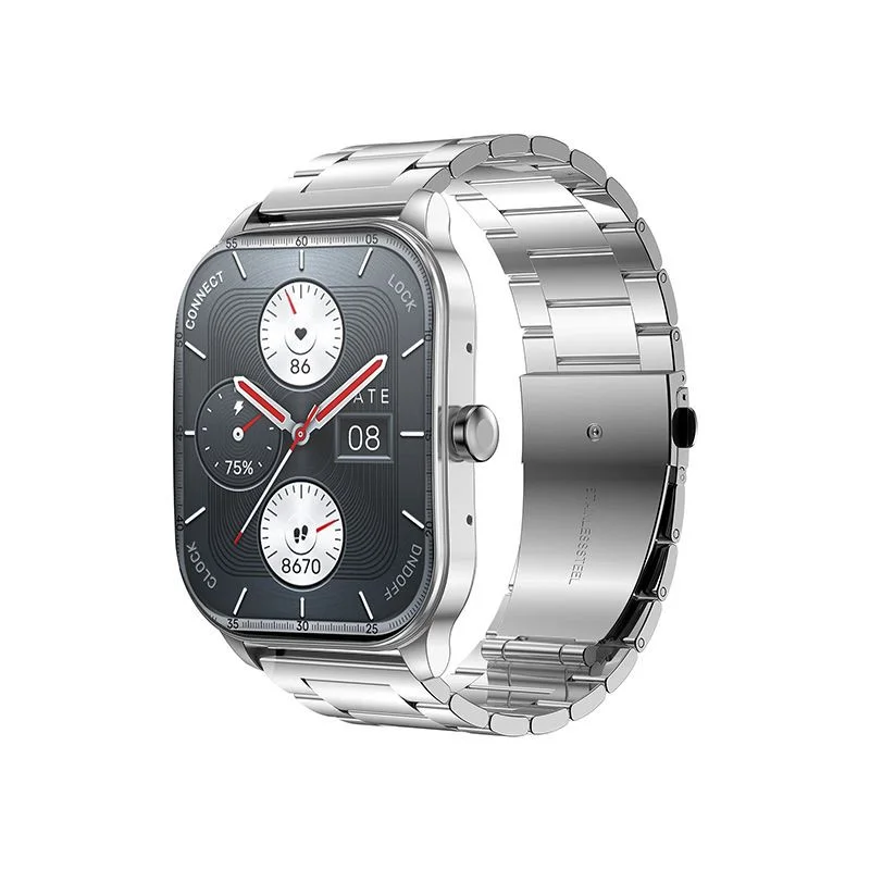 ساعت هوشمند pop 3s با بدنهای فلزی و سبک، ظاهری شیک و مدرن دارد. این ساعت با وزن تنها 120 گرم، در استفادههای طولانی مدت احساس ناخوشایندی ایجاد نمیکند. بندهای سیلیکونی نرم و قابل تعویض، به راحتی روی مچ دست قرار میگیرند و برای پوستهای حساس نیز مناسب هستند. نمایشگر 1.96 اینچی AMOLED با وضوح بالا و رنگهای زنده، محتوای بصری را به زیبایی به نمایش میگذارد. حاشیههای باریک نمایشگر ساعت هوشمند مدل Pop 3S، حس و حال یک صفحه ردهبالا را القا میکند و سطح خمیده 2.5D، خوانایی صفحه را در زیر نور خورشید افزایش میدهد.