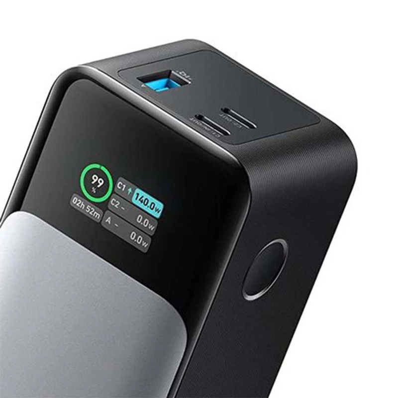 - شارژ سریع دوطرفه (Two-Way Fast Charging): مجهز به فناوری Power Delivery ۳.۱، Anker 737 خروجی تا ۱۴۰ وات را از پورتهای USB-C ارائه میدهد، که ایدهآل برای شارژ لپتاپهای قدرتمند مانند MacBook، Dell XPS یا حتی Vision Pro است. خود پاوربانک نیز در کمتر از یک ساعت با شارژر ۱۴۰ واتی کامل میشود. پورت USB-A با خروجی ۱۸ وات، انعطافپذیری بیشتری برای دستگاههای قدیمیتر فراهم میکند و امکان شارژ همزمان سه دستگاه را بدون افت سرعت میدهد.